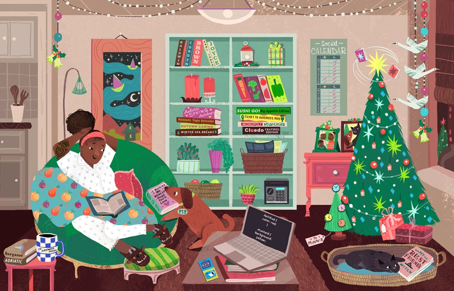 This year’s Hidden Books Game is illustrated by Sandhya Prabhat. Sandhya is an independent Animator and Illustrator based in the Bay Area, California and is from Chennai, India.